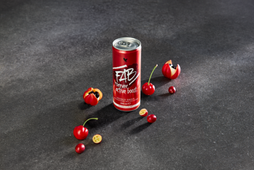 FAB est un délicieux mélange d’arômes exotiques provenant du guarana (antioxydants), de l’acérola, et du cranberry (vitamine C). Il contient également des graines de café arabica, de la taurine et du glucuronolactone combinés à des vitamines B2 et B3 qui contribuent au fonctionnement normal du système nerveux et à un métabolisme énergétique normal.