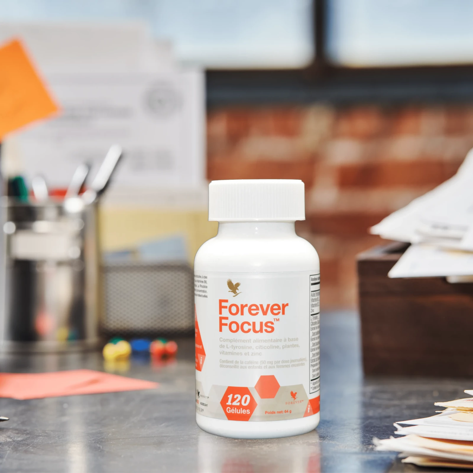 Forever Focus™ associe le Cognizin®, une forme brevetée de citicoline, à des plantes traditionnelles, des vitamines B6 et B12 et du zinc. Les vitamines B6, B12 et l’acide pantothénique contribuent à réduire la fatigue. La Rhodiole soutient l’activité intellectuelle et le Brahmi aide à accroître la concentration. L’acide pantothénique contribue également à des performances intellectuelles normales et le zinc à une fonction cognitive normale.